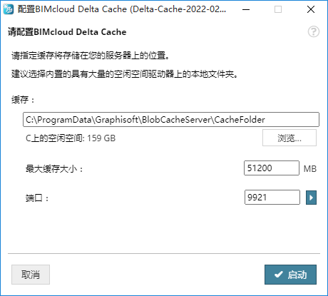 緩存檔案夾:BIMcloud Delta Cache將在該檔案夾中臨時存儲緩存數據。輸入其路徑或點擊瀏覽設定其路徑。