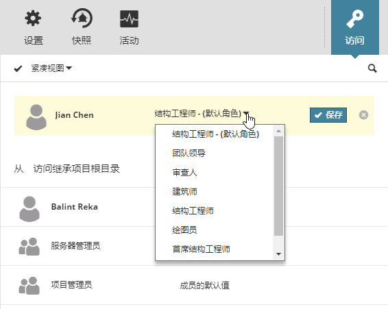 - 為選定的用戶和組合賦予一個角色——它定義了他們對選定項是什麼角色。(每個角色都是一組權限集。在"角色"頁上定義與可編輯角色。)你可以: