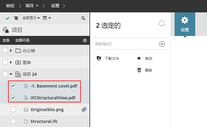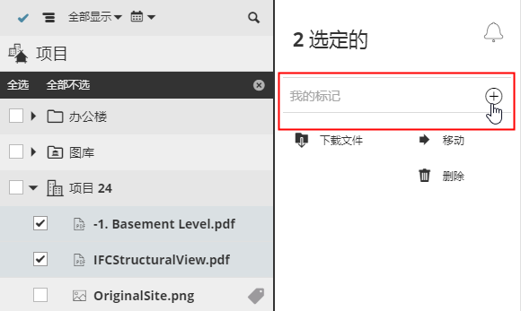 所有列在BIMcloud專案頁面中的項均可添加標籤:團隊工作專案,BIMcloud專案,圖庫,檔案夾和上傳的檔案。