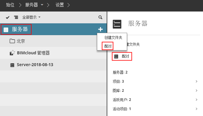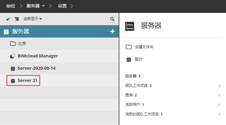 BIMcloud Server將自動出現在 BIMcloud Manager的導航器中。