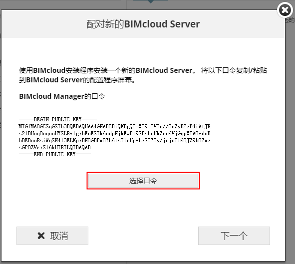 如果需要手動將 BIMcloud Server 與 BIMcloud Manager 配對,可以將 BIMcloud Manager 的公共密鑰(令牌)複製貼上到 BIMcloud Server 的配置頁面中。