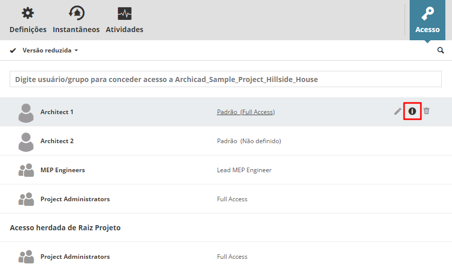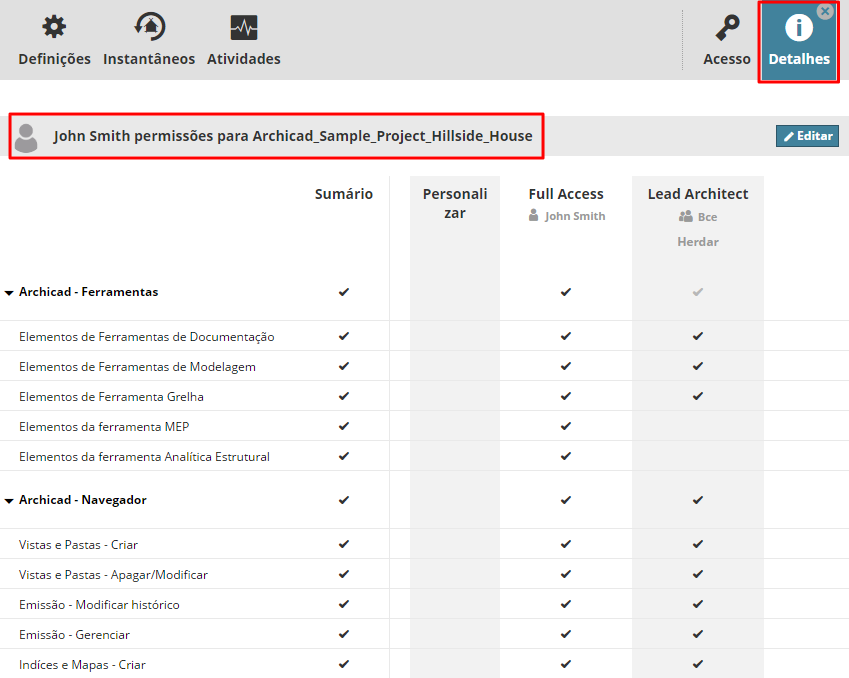 Veja quem tem acesso a cada item de conteúdo no BIMcloud Manager