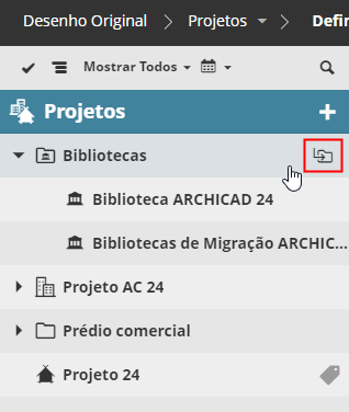 Na vista em Lista da página de Projetos do BIMcloud Manager: