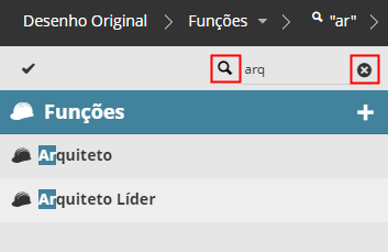 Nas páginas Projetos e Usuários, use os filtros para restringir a lista de itens exibida.