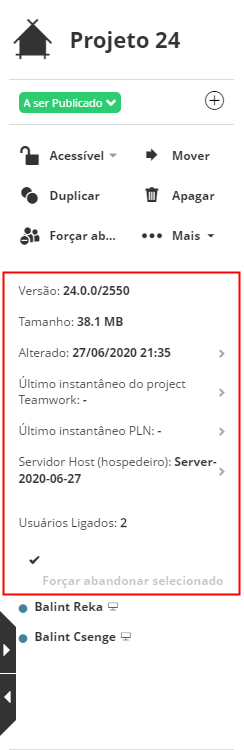 Para um Projeto selecionado (página de Projetos apenas): os usuários que se ligaram neste projeto.