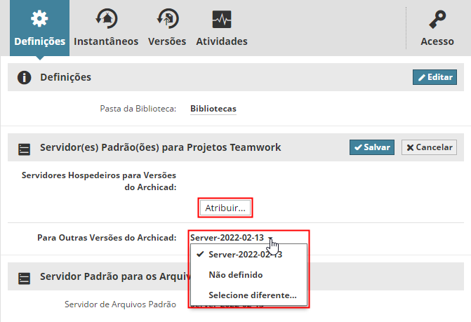 Você não pode alterar este servidor aqui. Para alterar o Servidor de Arquivos (apenas administrador mestre), acesse a página Servidores do BIMcloud Manager.