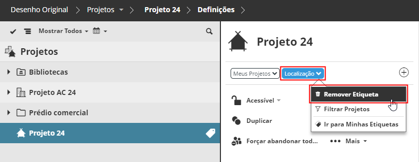 Na seção de resumo, clique na etiqueta que você deseja remover.