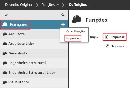 Primeiro, exporte as funções do outro BIMcloud. Para esse processo, consulte: Exportar funções.