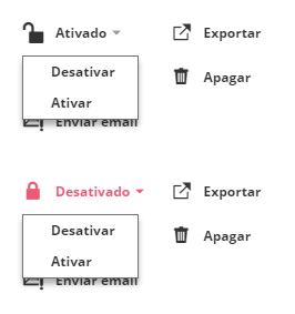 Selecione o usuário e, em seguida, use os comandos Ativado/Desativado.