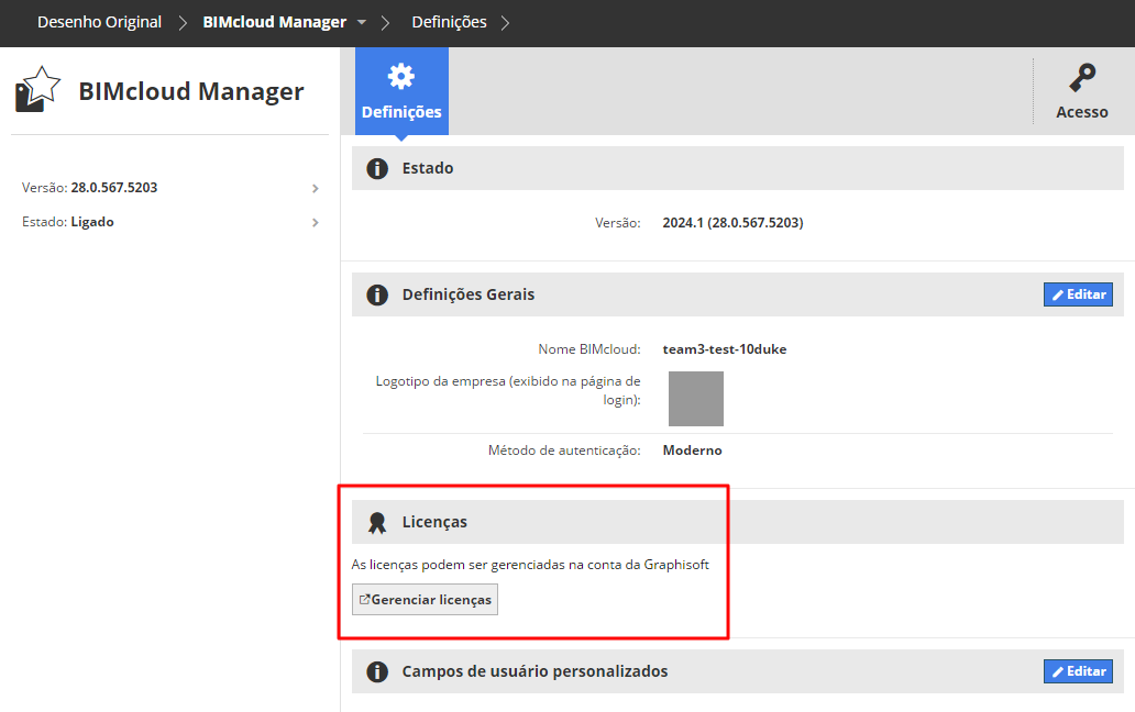 - Suas licenças e usuários do BIMcloud são gerenciados na conta da sua empresa - em vez do BIMcloud Manager