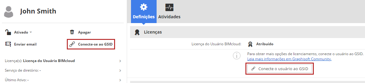 Use este fluxo de trabalho para conectar um usuário BIMcloud existente à sua conta da GSID. Isso ativa as opções de licença adicionais disponíveis apenas para usuários da GSID.