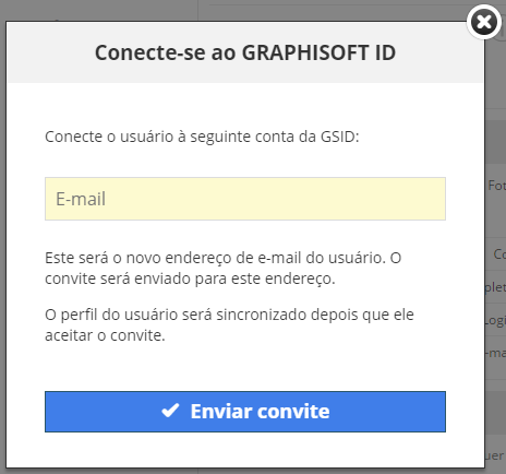 Se o e-mail inserido NÃO for um endereço de e-mail da GSID ou estiver incorreto, clique em “Conectar à GSID”, a partir do perfil do usuário, e digite um novo endereço