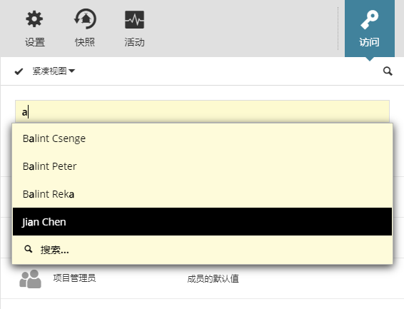 打开“访问”面板,然后开始键入可以访问它的人员的姓名,或单击“搜索”。为将访问通道开放给所有用户, 请使用特殊所有人组。
