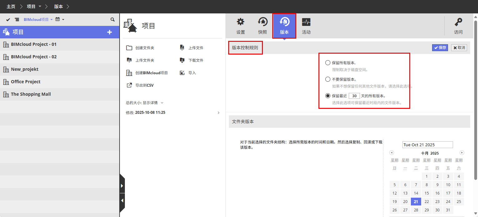 如果要检索或回滚以前的状态,这些旧版本可能很有用。然而,存储旧版本会占用空间。使用BIMcloud的版本管理规则来决定是否存储文件版本以及存储多长时间。