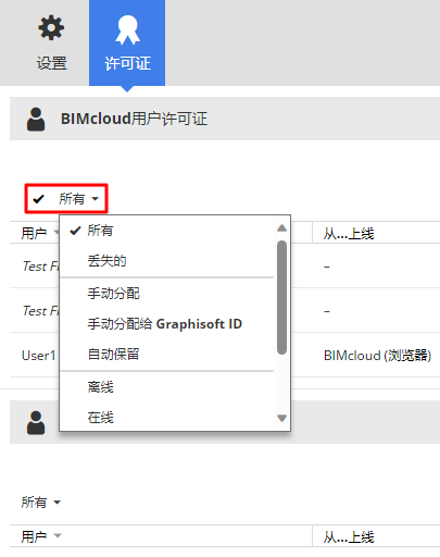 分配手动许可证给用户。用户即使在关闭BIMcloud上的所有项目或离线后,仍将永久持有手动分配的 BIMcloud 许可证。