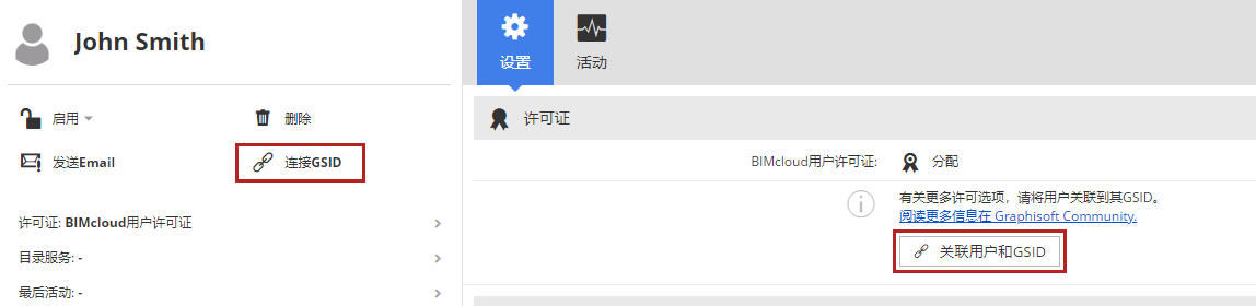 注:BIMcloud 上的每个用户都必须拥有一个唯一的 GSID 电子邮件地址。