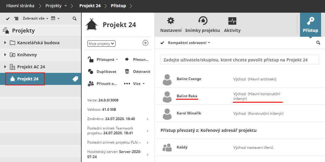 Jak uživatelům přidělit přístup k obsahu na BIMcloudu