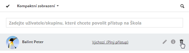 Najeďte kurzorem nad uživatele, kterého chcete odebrat.
