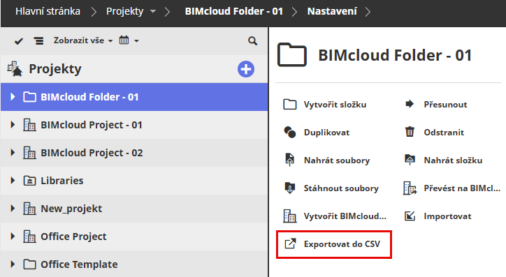 Export seznamu obsahu složek ve formátu CSV