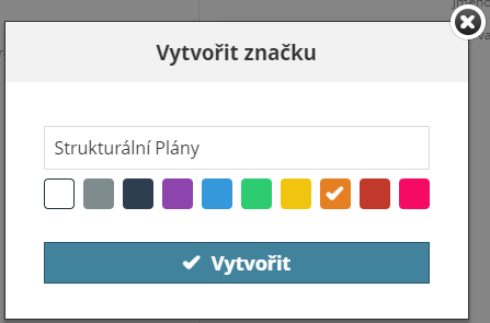 Poznámka: Novou značku můžete vytvořit také na stránce Projekty.