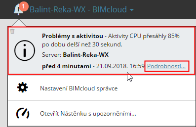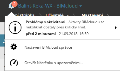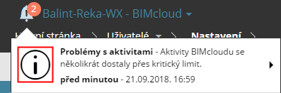 v seznamu notifikací (ikona zvonku) na všech stránkách BIMcloud Manageru