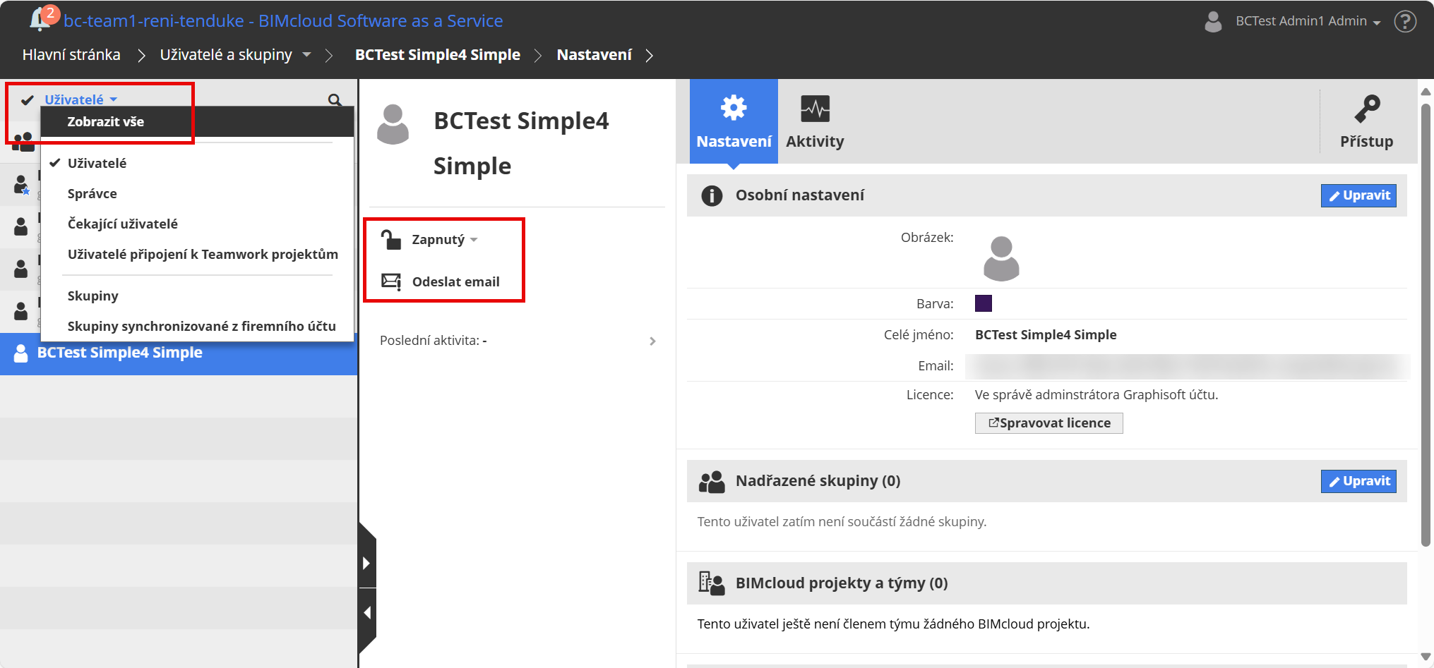 Správa uživatelů BIMcloudu