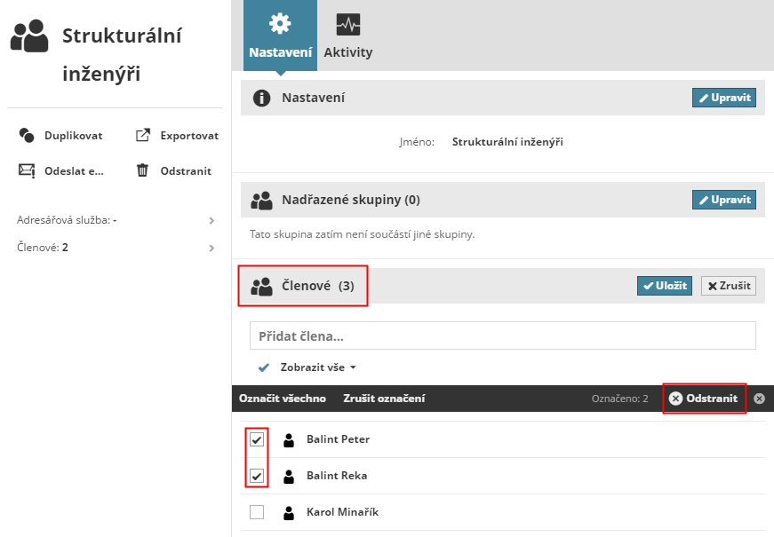 Odstranění člena ze skupiny