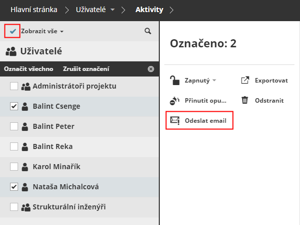 Odeslání e-mailu vybraným uživatelům BIMcloudu