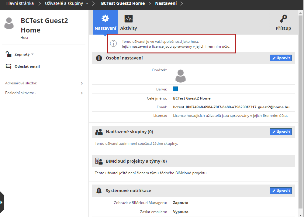 Správci společnosti mohou do svého BIMcloudu zvát uživatele z jiných společností jako hosty. (Administrátoři mají tuto možnost ve firemním Graphisoft účtu.)