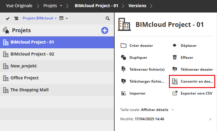 Organiser les fichiers dans un dossier simple au lieu de projet BIMcloud