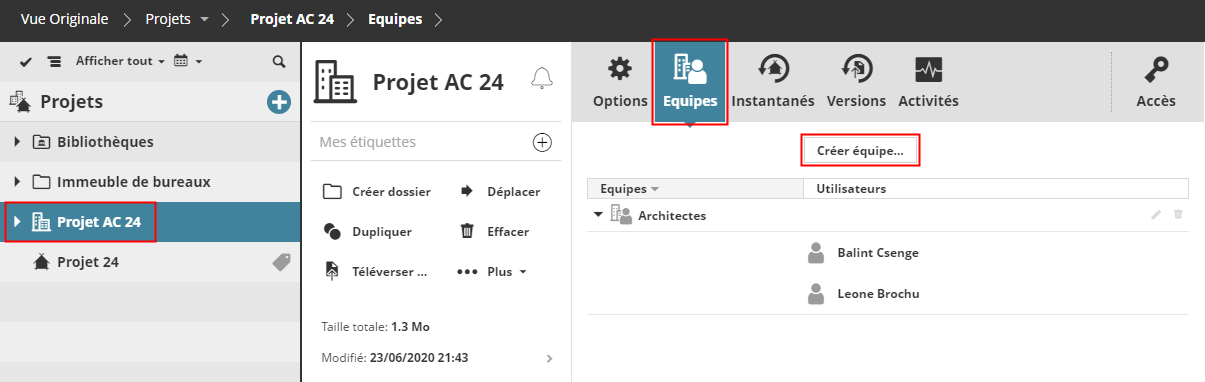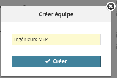 3. Saisissez le nom de l'équipe (par ex. “Ingénieurs MEP”), puis cliquez sur Créer.