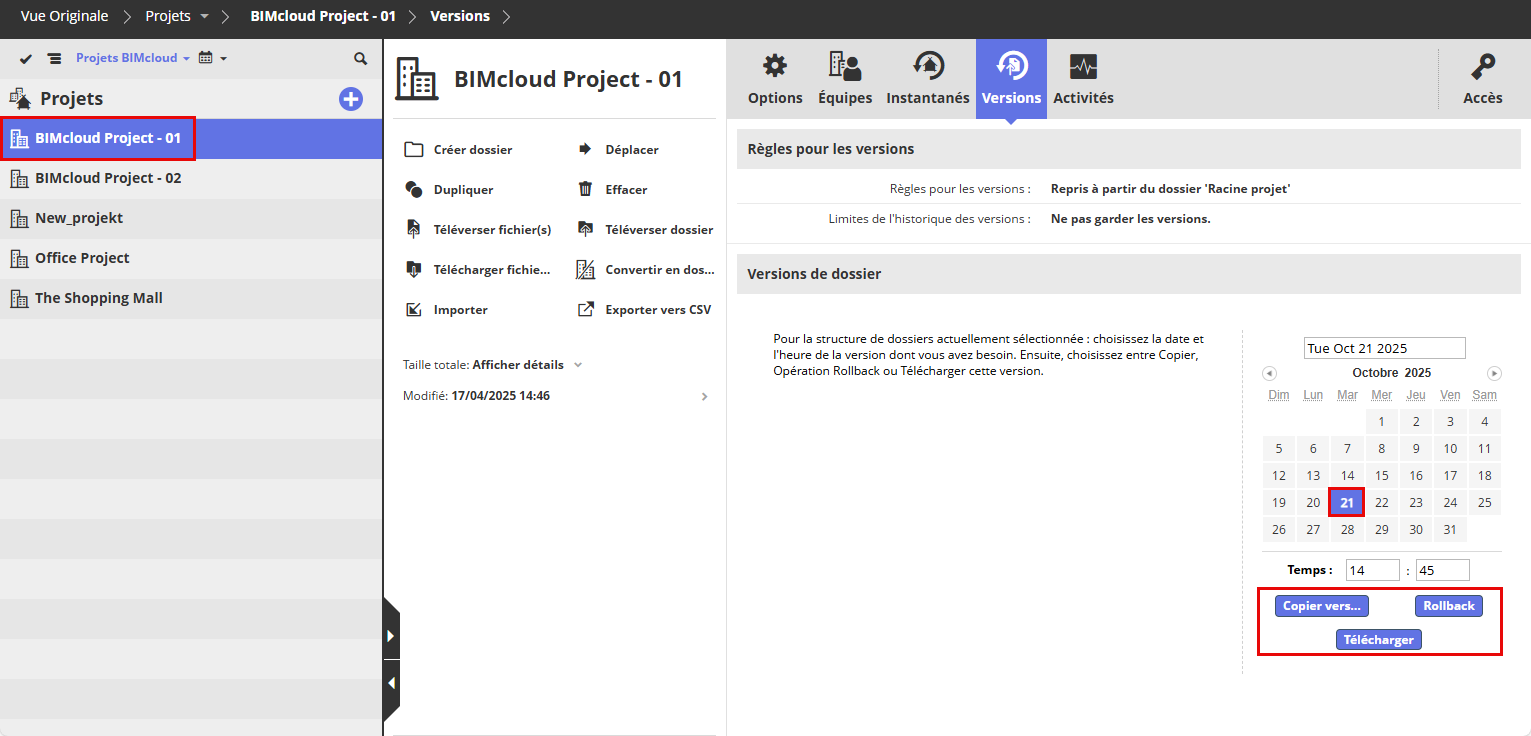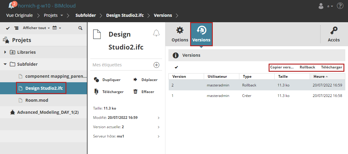 Mémoriser et retrouver les versions précédentes des fichiers sur BIMcloud