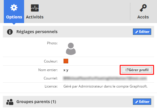 Dans un BIMcloud avec des licences cloud, chaque utilisateur peut également gérer son propre profil et sa propre licence.