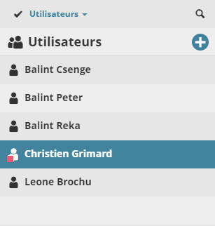 Un utilisateur désactivé est affiché avec un badge rouge dans la liste des utilisateurs :