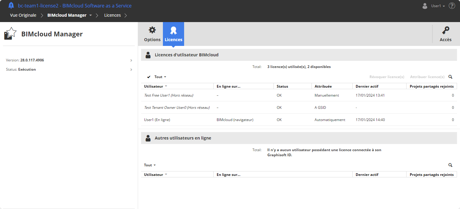 Voir aussi l'article sur Graphisoft Community: Assigner des licences sur BIMcloud as a Service