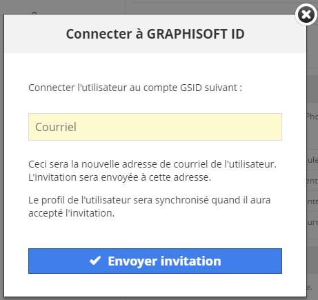 Si le courriel saisi N'EST PAS une adresse de courriel GSID ou si vous avez fait une erreur de saisie, cliquez sur “Connecter à GSID” dans le profil de l'utilisateur et saisissez une nouvelle adresse
