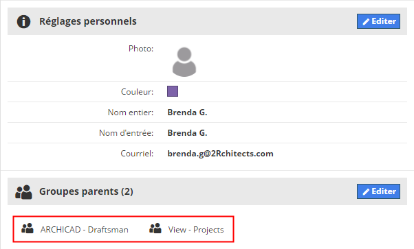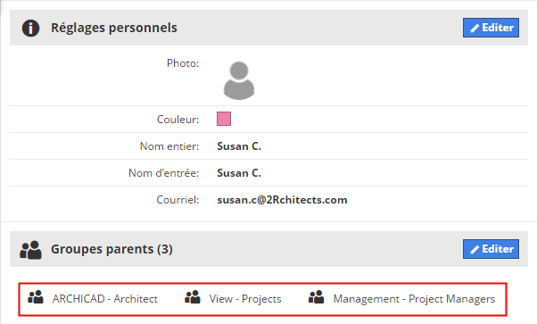 Pour travailler efficacement dans Teamwork, chaque nouvel utilisateur doit être ajouté à au moins deux des groupes : un des groupes Archicad et un des groupes Vue.