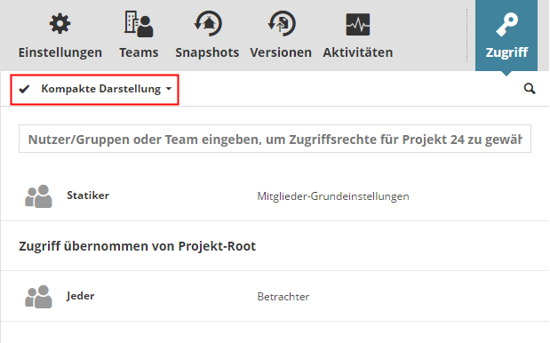 - Nach Nutzern zusammenfassen:Dies ist eine flache Liste von Nutzern und Gruppen, die Zugriff auf dieses Element haben
