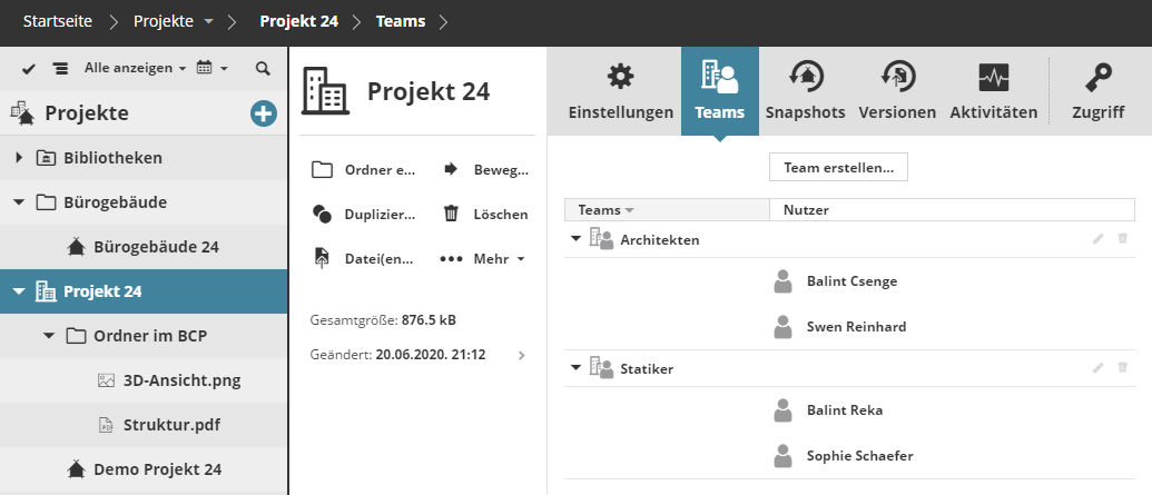 Gruppieren Sie alle Projekte, Dateien und Unterordner an einem Ort und weisen Sie sie einem Team von Benutzern zu