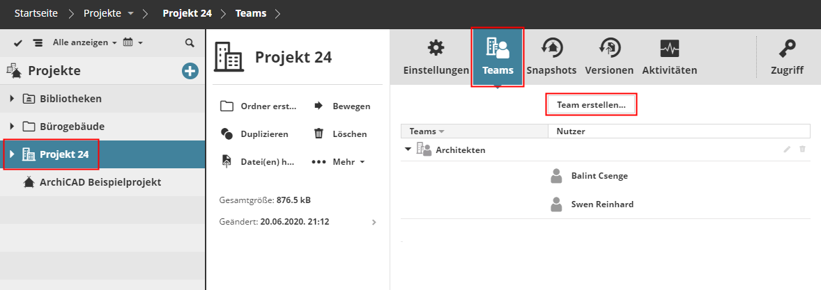 Einrichten eines Teams für ein BIMcloud-Projekt