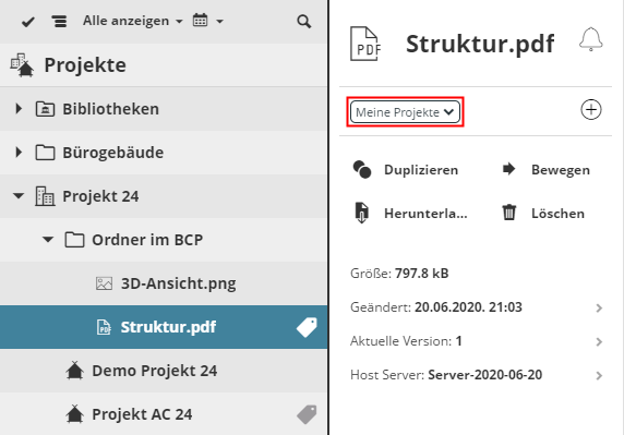 Öffnen Sie die Projekt-Seite des BIMcloud Managers.