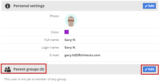Gehen Sie zu Übergeordnete Gruppen und klicken Sie auf Bearbeiten.