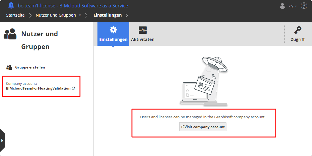 Um auf BIMcloud SaaS mit Cloud-Lizenzen zu arbeiten, muss jede:r Nutzer:in Mitglied Ihres Büro-Accounts sein.