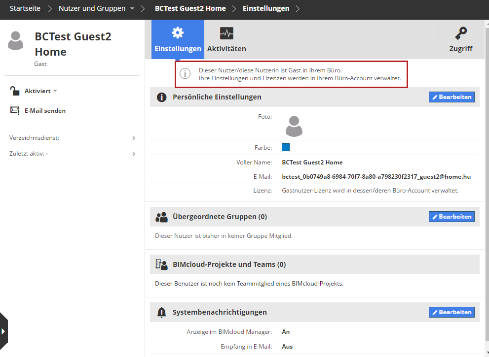 - kann wie jeder andere BIMcloud-Nutzer Rollen und Zugriffsrechte zugewiesen bekommen