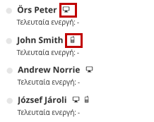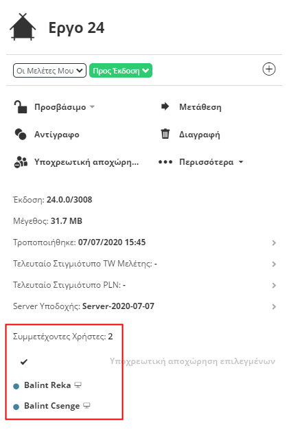 Τα εικονίδια δίπλα σε κάθε όνομα χρήστη υποδεικνύουν τον τύπο της εφαρμογής στην οποία εργάζεται ο χρήστης (π.χ. Archicad ή εφαρμογή BIMx για κινητά).