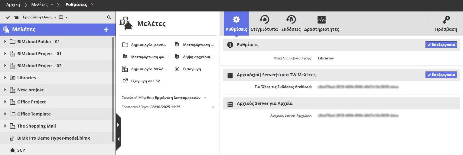 BIMcloud Βιβλιοθήκες (μεταφορτώνονται αυτόματα όταν γίνεται μοίρασμα μίας TW Μελέτης)