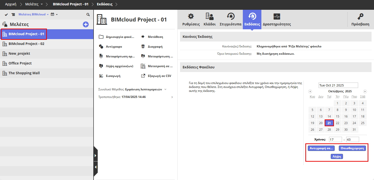 Απομνημόνευση και ανάκτηση προηγούμενων εκδόσεων αρχείων στο BIMcloud
