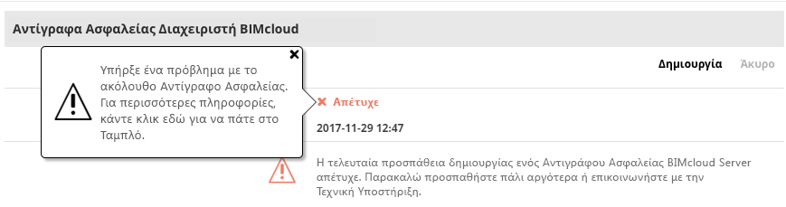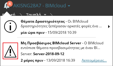Θα δείτε επίσης τις Ειδοποιήσεις στα αναδυόμενα παράθυρα στα σχετικά μέρη του BIMcloud Manager: