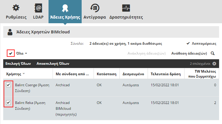 Δείτε επίσης το άρθρο στο Graphisoft Community: Ανάθεση αδειών χρήσης στο BIMcloud as a Service