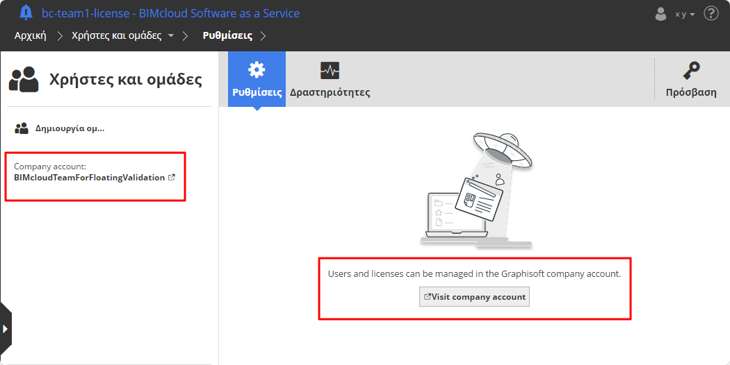 Για να εργαστείτε στο BIMcloud SaaS με άδειες χρήσης cloud, κάθε χρήστης πρέπει να είναι μέλος του λογαριασμού της εταιρείας σας στην Graphisoft.